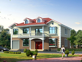 欧式二层带车库别墅施工图纸及效果图_新农村自建别墅设计