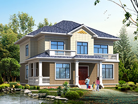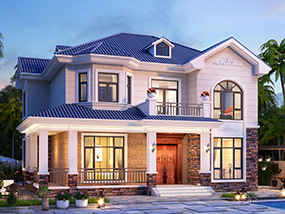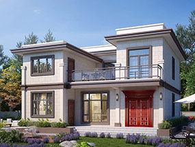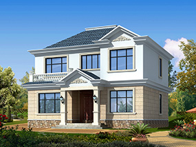 二层简欧带阳台小别墅图纸及效果图_农村两层自建房设计