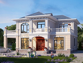 二层欧式带阳台实用别墅施工图纸及效果图_新农村自建房设计