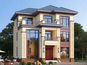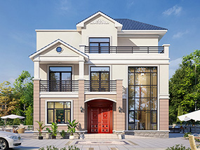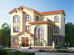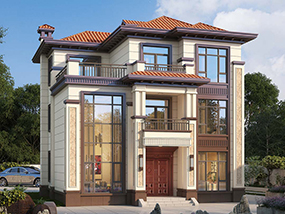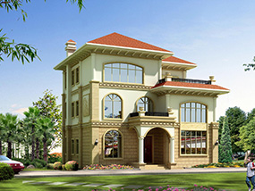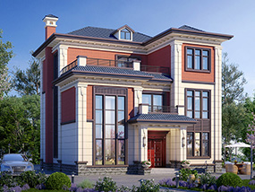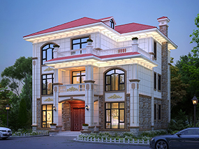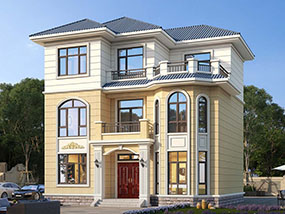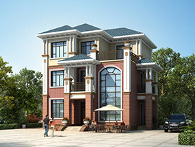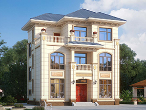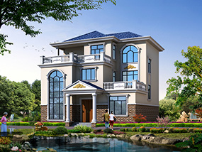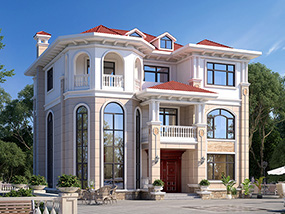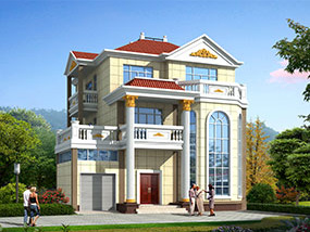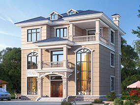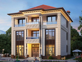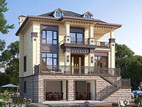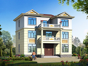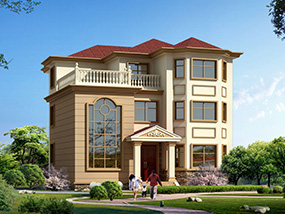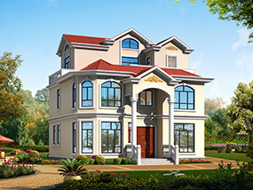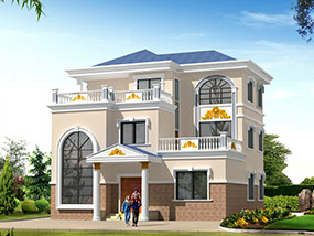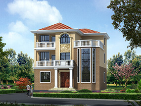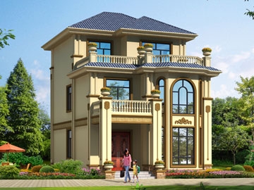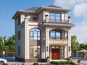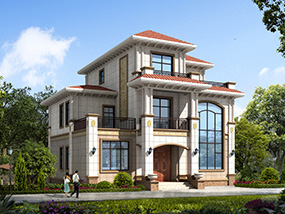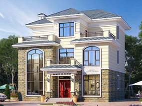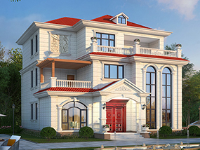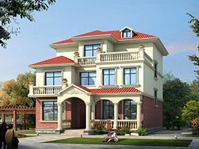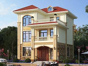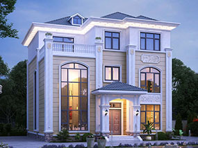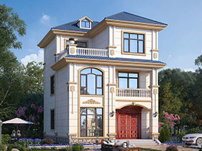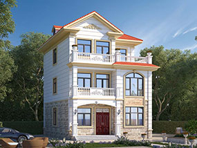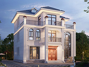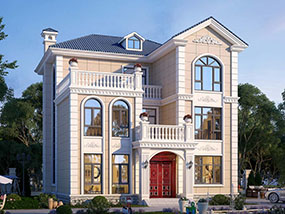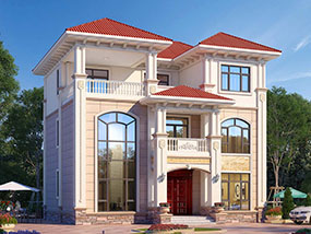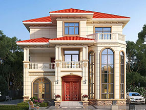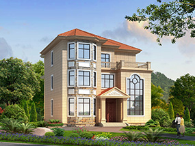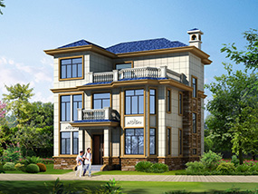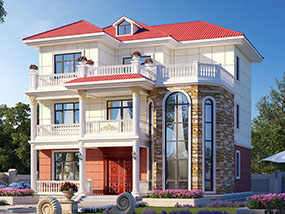 欧式三层小户型自建别墅效果图及施工图纸_农村别墅设计