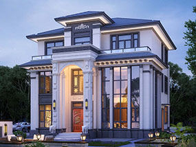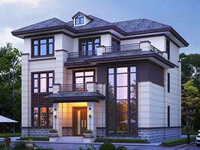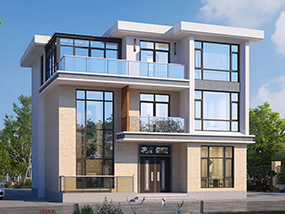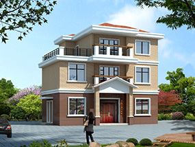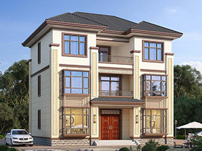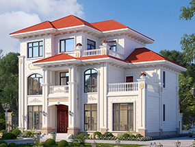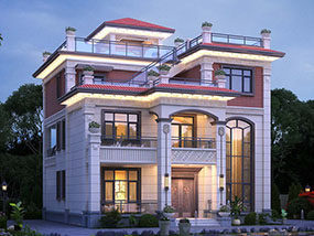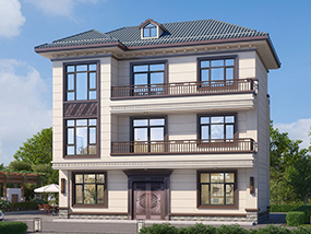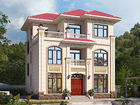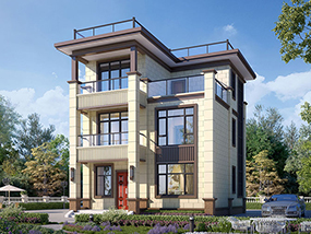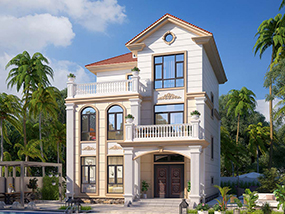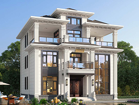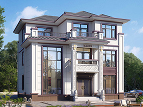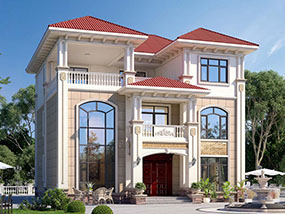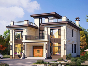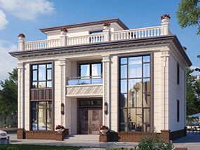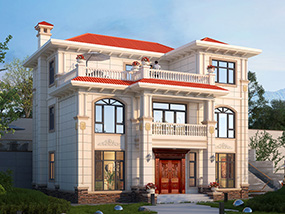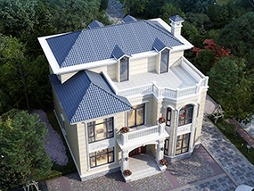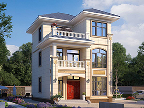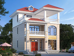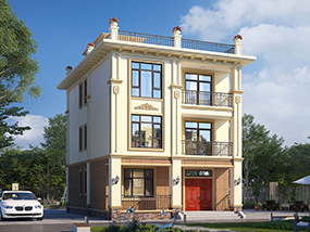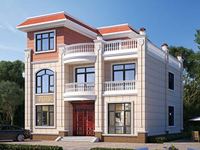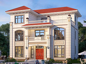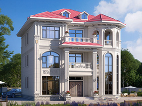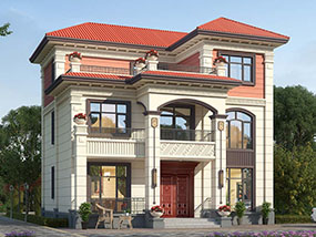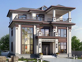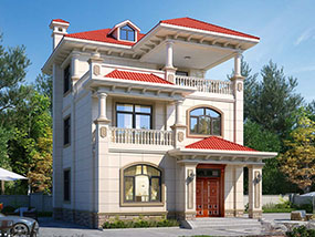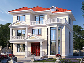 三层欧式小户型平屋顶别墅图纸及效果图_农村自建别墅设计