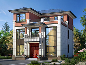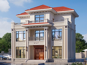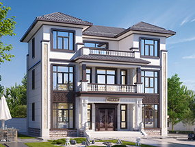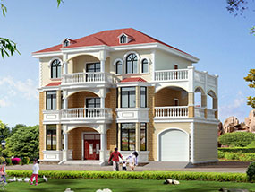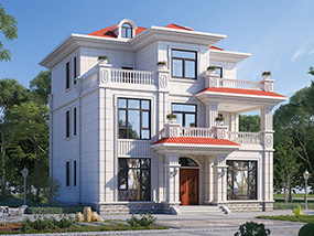 欧式三层带露台农村小别墅设计图纸及效果图_自建房屋设计图纸