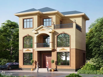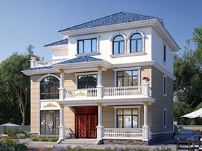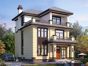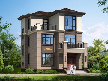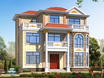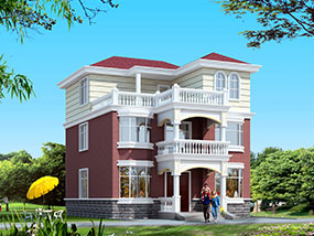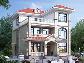 欧式三层带露台小户型别墅设计图纸及效果图_农村三层别墅设计