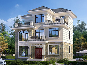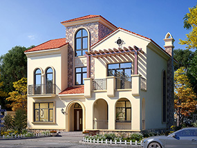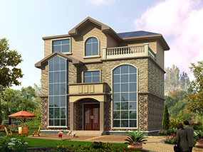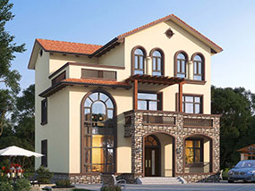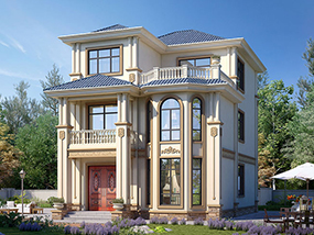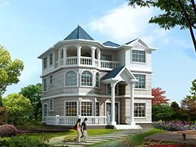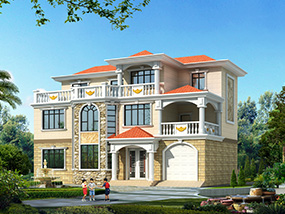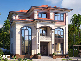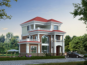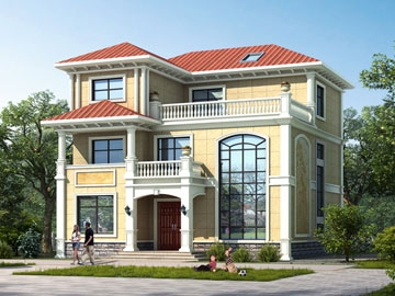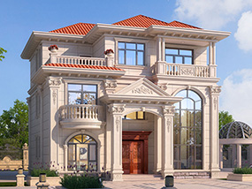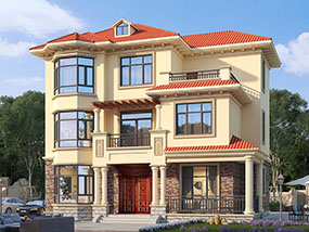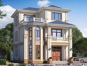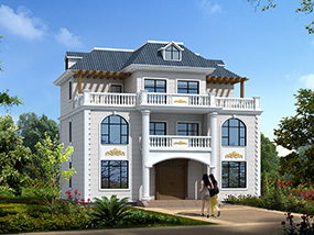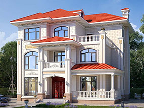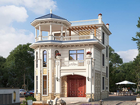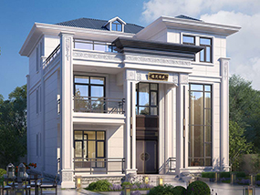 欧式三层带凉亭实用小别墅效果图及施工图纸_新农村自建房设计