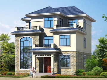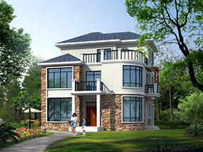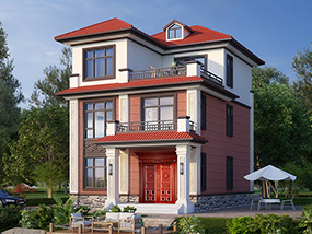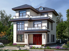 [砖混结构]漂亮的三层带露台农村小别墅设计图纸_三层别墅设计