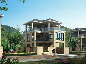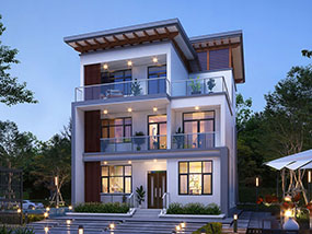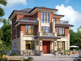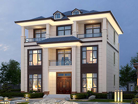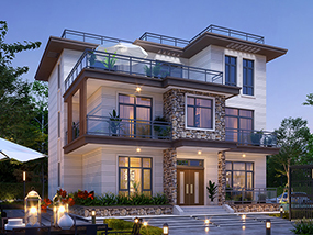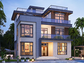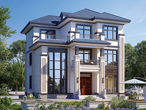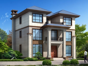新中式三层复式别墅图纸及效果图_农村平屋顶别墅设计