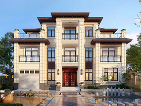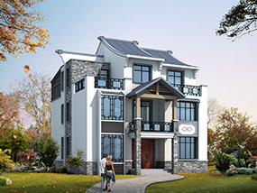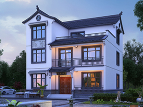 新中式三层带阳台别墅施工图纸及效果图_农村自建别墅设计