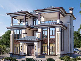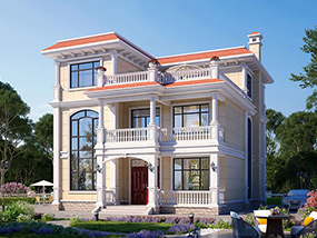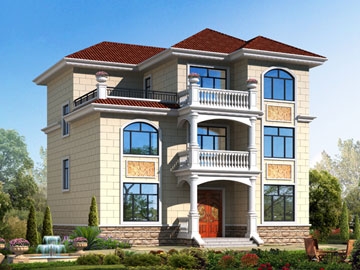 欧式三层带露台别墅图纸及外观效果图_新农村自建房屋设计