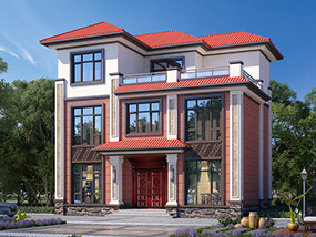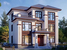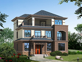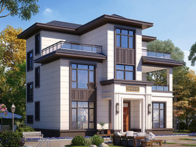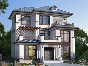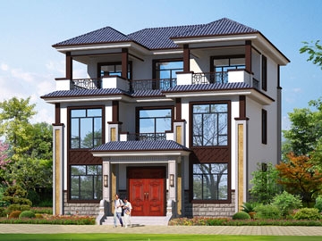 新中式三层带露台小别墅设计效果图_农村三层别墅设计图纸
