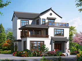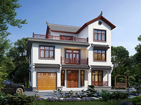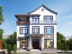 新中式三层带露台农村别墅图纸及效果图_农村别墅设计