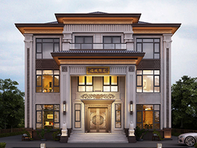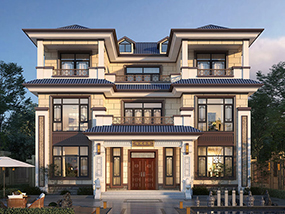 大气三层新中式别墅设计图纸及效果图_农村自建别墅设计