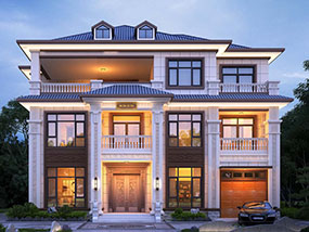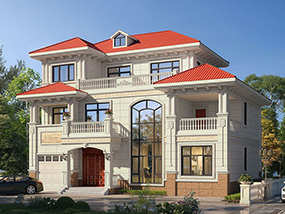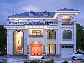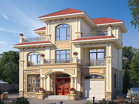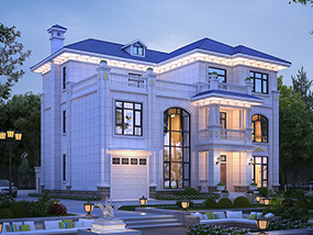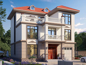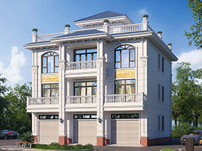 三层简欧带车库别墅图纸及效果图_新农村自建别墅设计