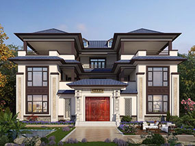 大气新中式三层复式别墅图纸及效果图_农村自建别墅设计