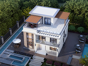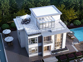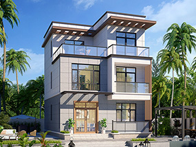 现代三层平屋顶别墅施工图纸及效果图_农村自建别墅设计