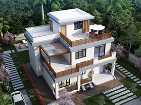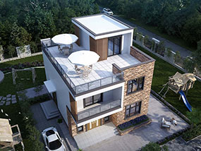 现代三层平屋顶别墅设计图纸及效果图_新农村自建别墅设计