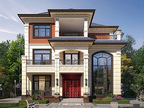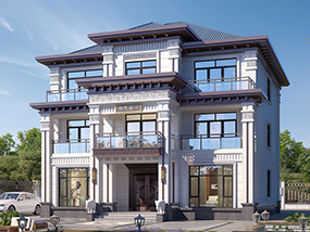 新中式三层带露台农村别墅设计图纸_三层新古典别墅设计图效果图