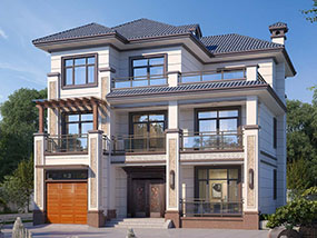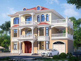 三层欧式带车库别墅施工图纸及效果图_新农村自建房屋设计