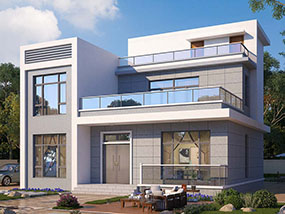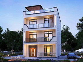 三层现代平屋顶别墅图纸及效果图_新农村自建别墅设计