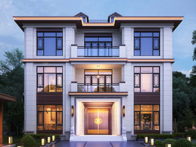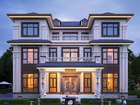 新中式三层复式别墅图纸及外观效果图_农村自建别墅设计