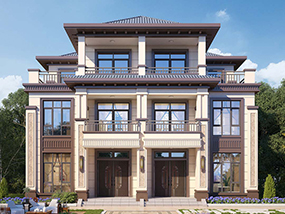 欧式三层共堂屋双拼别墅图纸及效果图_农村兄弟自建房设计