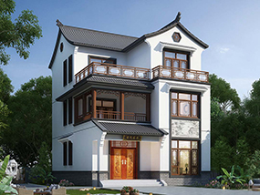 新中式三层小户型别墅图纸及效果图_农村自建别墅设计