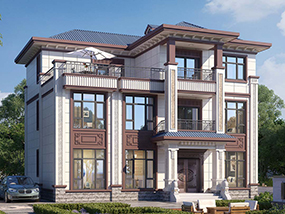 欧式三层带露台别墅设计施工图纸及效果图_新农村自建房设计