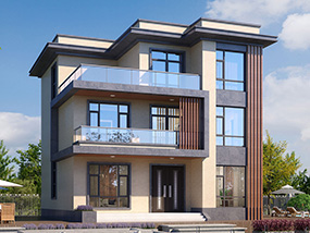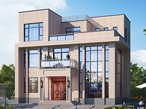 三层现代风格平屋顶别墅施工图纸及效果图_新农村自建房设计