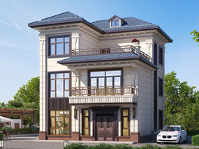 三层简欧带露台小户型别墅图纸及效果图_农村自建房设计