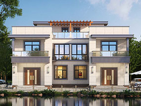 大气新中式三层双拼别墅图纸及效果图_农村自建别墅设计