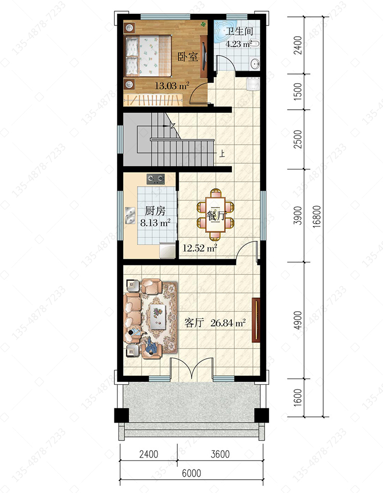 一 层:客厅、卧室、厨房、餐厅、卫生间