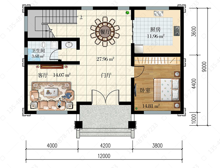 一 层:门厅、客厅、卧室、厨房、餐厅、卫生间