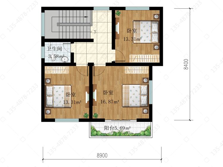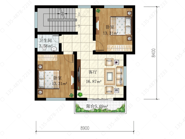 一 层:客厅、卧室、厨房(兼餐厅)、卫生间