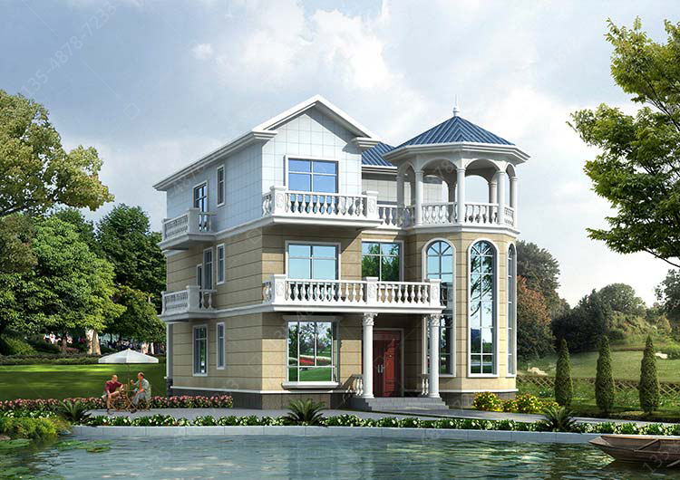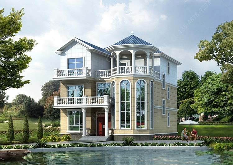 三 层:健身房(附露台)、卧室(附卫生间,露台)、2卧室、书房、卫生间、露台、凉亭