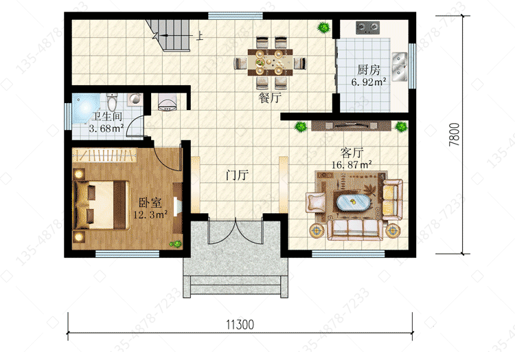 一 层:门厅、客厅、卧室、厨房、餐厅、卫生间