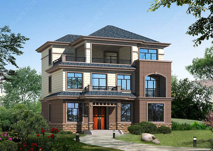三 层: 卧室(附书房+衣帽间、卫生间、露台)、卧室(附书房+衣帽间)、卫生间、阳台、露台