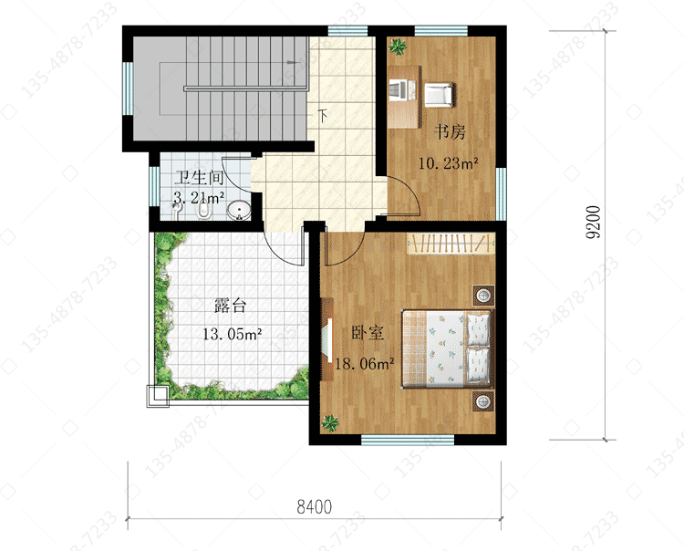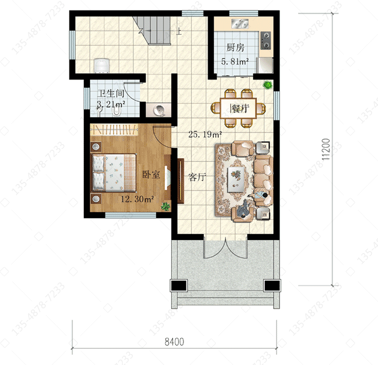 一 层:客厅、卧室、厨房、餐厅、卫生间