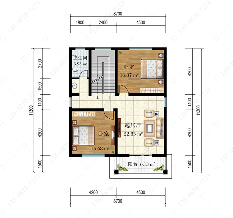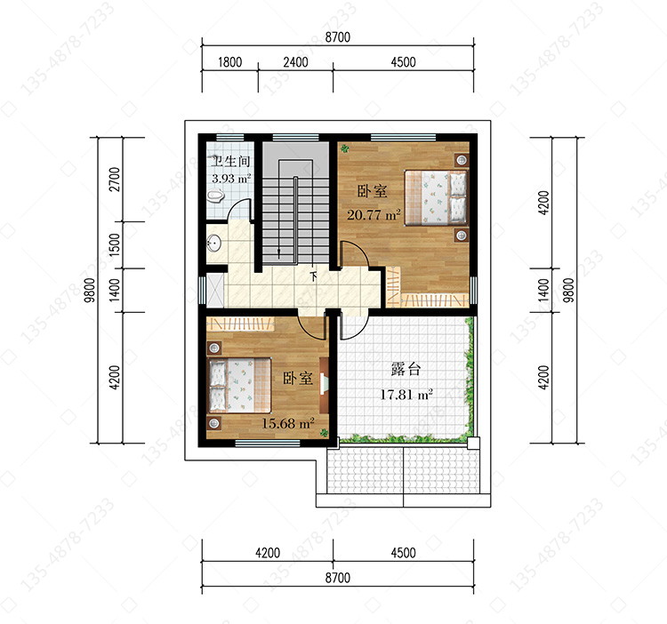 三 层:2卧室、卫生间、露台