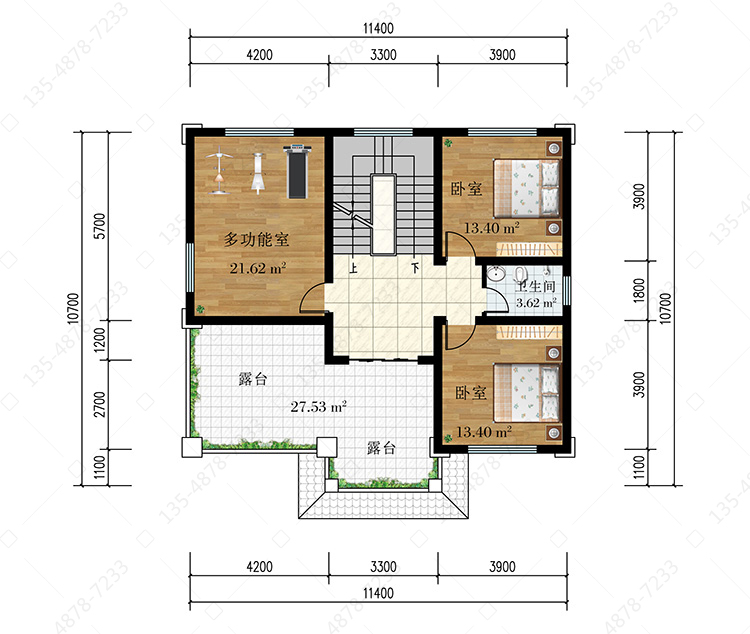 三 层:2卧室、多功能室、卫生间、露台