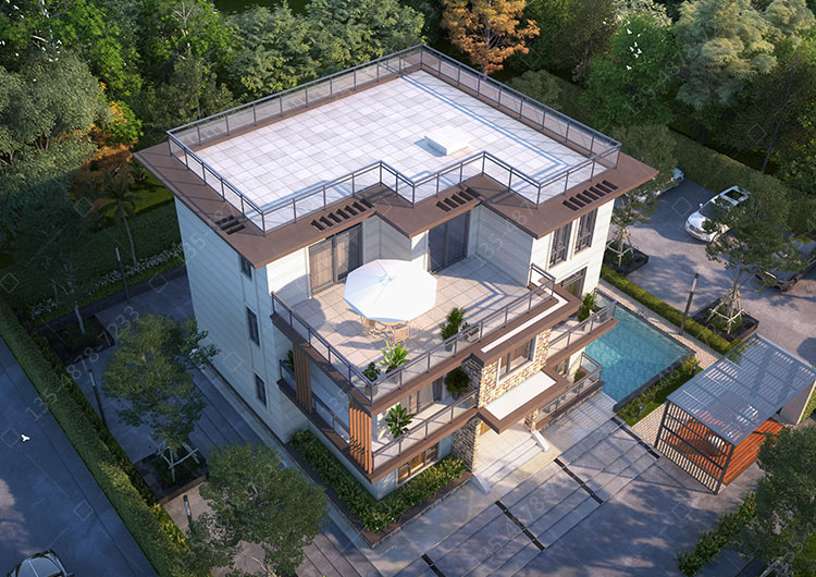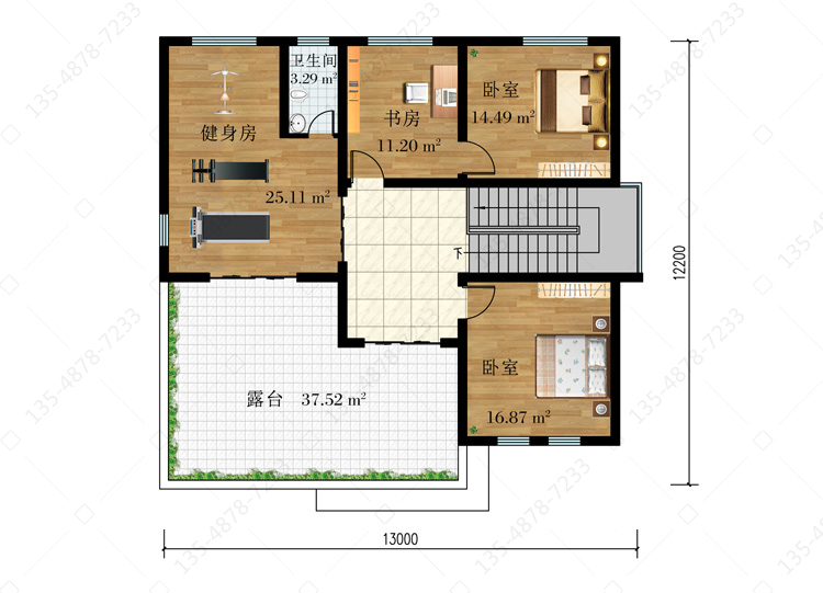 三 层:卧室(附书房)、卧室、健身房(附卫生间)、露台