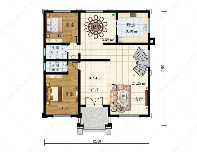 占地面积: 136.64平方米