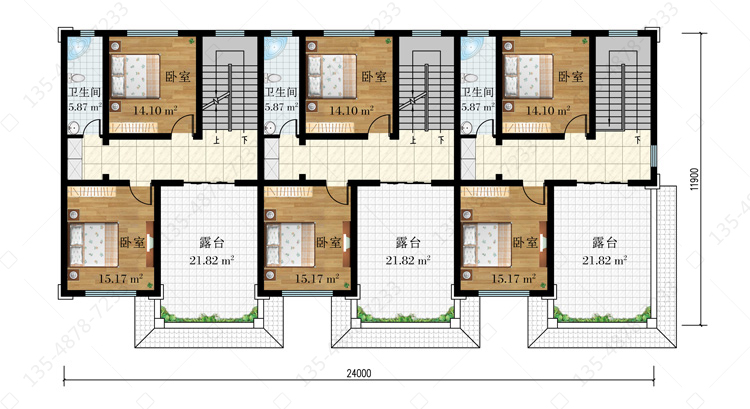 一 层:客厅、卧室、厨房、餐厅、卫生间