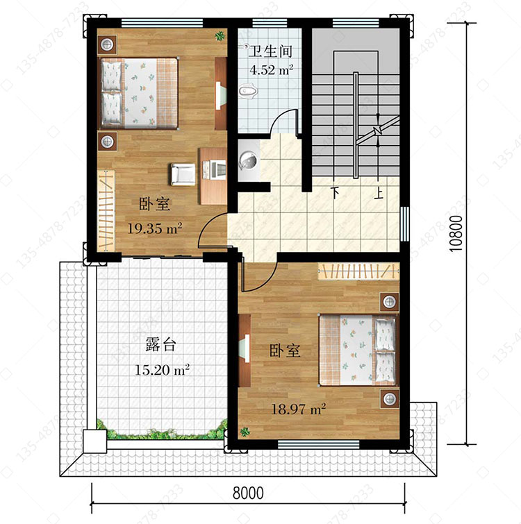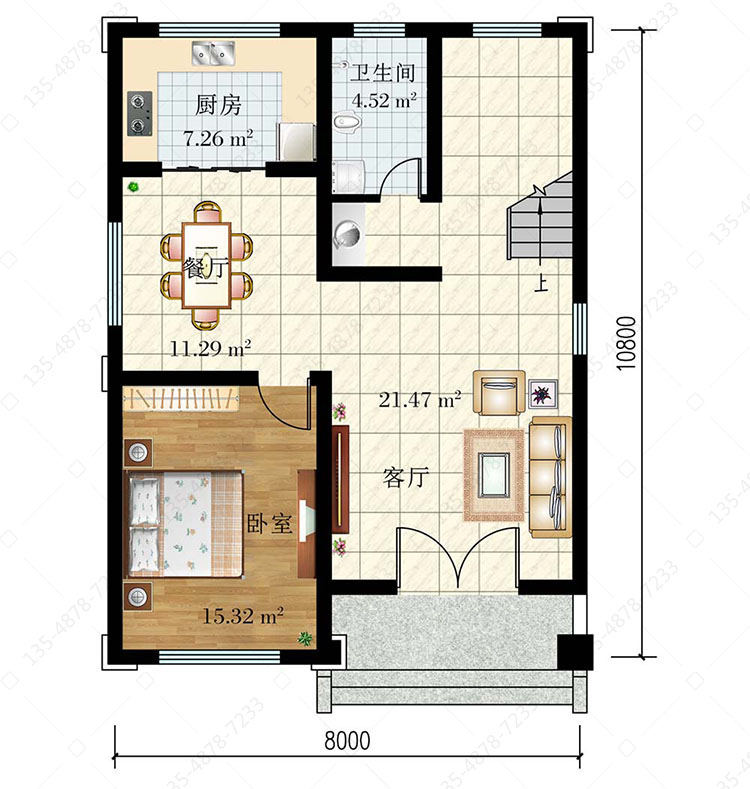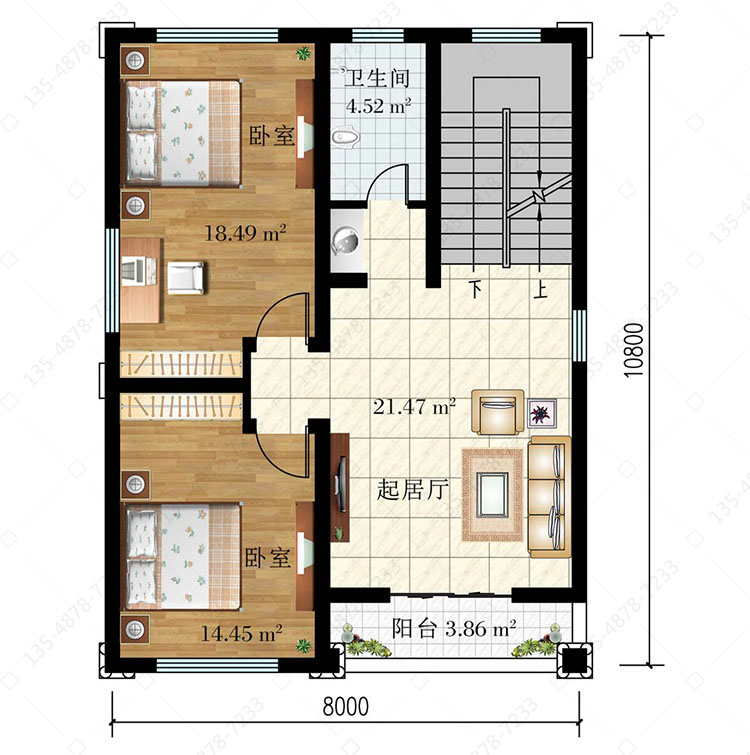 一 层:客厅、卧室、厨房、餐厅、卫生间