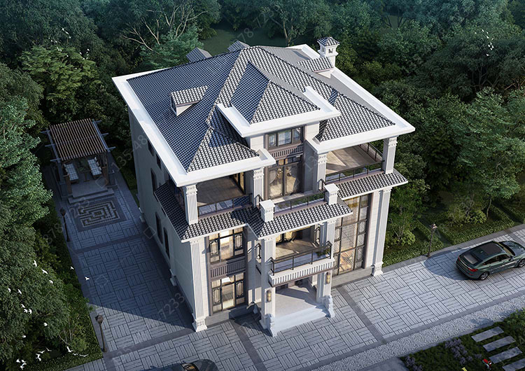 三 层:茶厅、健身区域、2卧室、杂物间、卫生间、2阳台、露台